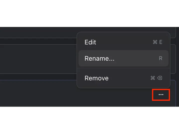 Stäng avsnittet och ge det ett namn genom att klicka på de tre prickarna brevid avsnittet
