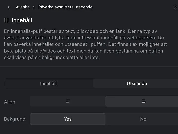 Påverka avsnittets utseende